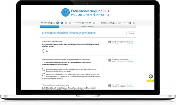 Erstellen Sie Ihre persönliche Patientenverfügung ganz einfach rechtssicher und online bei PatientenverfügungPlus.